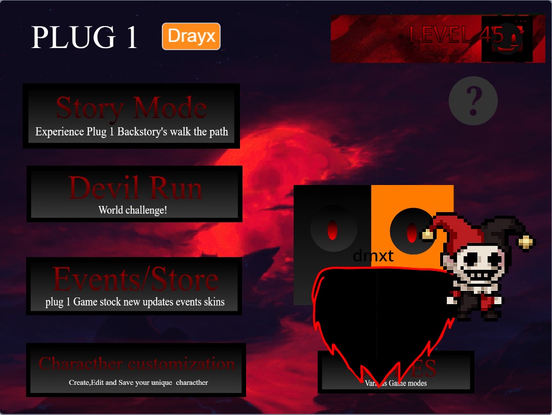 🎪 Game Summary: "Plug 1" You play as an evil clown who has lost all traces of humanity. Once a performer who spread joy, the clown was consumed by darkness, rage, and torment. The only path to salvation is a dangerous one: surviving a storm of cursed red orbs while collecting fragments of lost freedom, called Blue PNTZ, to slowly regain sanity. 🕹 Gameplay Loop Movement & Dodging The player controls the clown, moving around a chaotic arena. Red orbs rain down endlessly; some move fast, others curve or chase you. Combat The clown can shoot Mythic gun to destroy them. Some orbs get faster when hit a new level increasing the chaos. Bosses cannot be destroyed—only dodged. Sanity (PNTZ Collectibles) glowing blue fragments of freedom (PNTZ) appear to collect Collecting PNTZ fills a Sanity Meter. At the end u battle the Boss to regain full sanity,. Health & Death The clown has an HP bar. Every orb hit reduces HP. If HP reaches 0 → Game Over (the clown dies, trapped in eternal madness). 🎯 Objective Survive as long as possible while balancing risk and reward: dodging versus shooting. Regain sanity by collecting PNTZ to eventually break free from the curse. Freedom = true ending (beat the game). 🧠Core Mechanics HP Bar: Shows life. At 0 → death. Sanity Meter: Fills as you collect PNTZ; reaching 100% restores temporary freedom. Bullet Hell Pattern: Increasingly difficult red orb waves. Choice: Shoot or dodge? Shooting clears threats but risks spawning harder waves, while dodging builds multiplier bonuses. 🌑 Story & Theme The clown once symbolized laughter but is now a monster trapped in its own madness. Red orbs represent the guilt, blood, and sins haunting it. PNTZ fragments are memories of joy, humanity, and freedom. Only by enduring the storm can the clown restore its lost soul—or die trying. 🎨 Atmosphere Art Style: Dark carnival / horror circus pixel-art. Soundtrack: Creepy carnival music mixed with distorted laughter and deep bass. Visuals: Red orbs glow ominously. The clown’s appearance grows human when all sanity is regained Background shifts between carnival tents, abandoned rides, and void-like stages. Possible Endings Good Ending: Collect enough PNTZ to regain humanity → the clown is freed Bad Ending: HP hits 0 → death in eternal madness.